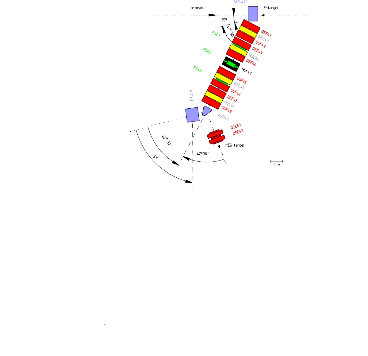 Fig 1 : Magnetic elements in piE5 beam line